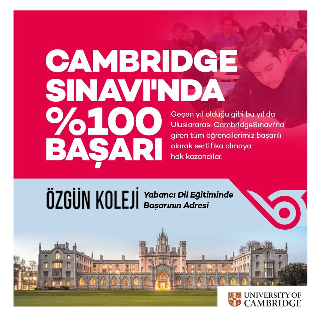 * %100 Başarı Garantisi: Uluslararası Cambridge Sınavı'nda gösterdiğimiz %100 başarı oranıyla gurur duyuyoruz. Bu "yabancı dili etkin kullanan" bireyler yetiştirme politikamızın bir parçasıdır.